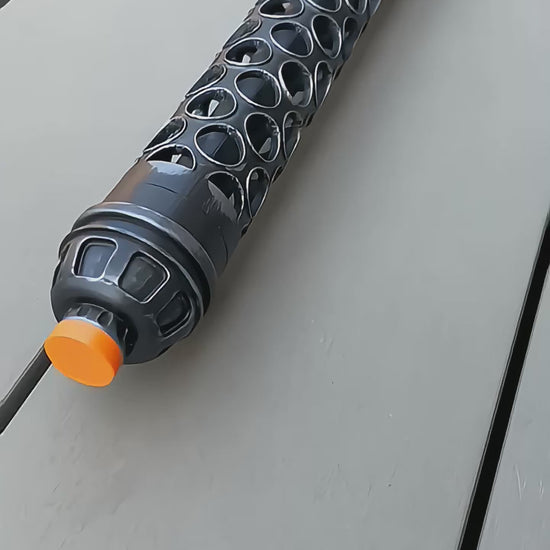 Dieser Blaster besteht wahlweise aus PLA oder PETG. Auf Wunsch gibt es diese Varianten auch Kohlefaserverstärkt. Zusammenfassend kann man sagen, dass PETG eine höhere Schlagfestigkeit aufweist und sehr schwer zu zerbrechen ist. Ebenso ist PETG weniger anfällig für Hitze ist und Temperaturen bis zu 74°C stand hält ohne sich zu verformen.