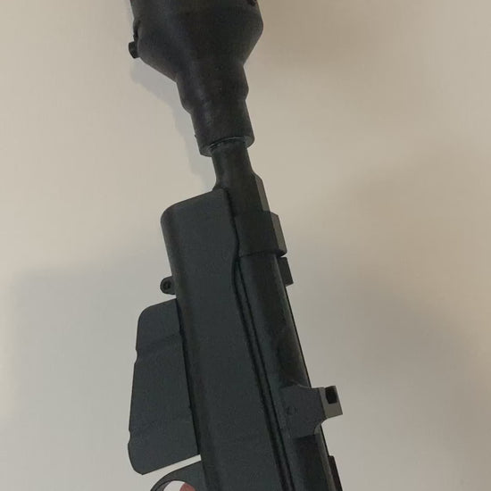 Dieser Blaster besteht wahlweise aus PLA oder PETG. Auf Wunsch gibt es diese Varianten auch Kohlefaserverstärkt. Zusammenfassend kann man sagen, dass PETG eine höhere Schlagfestigkeit aufweist und sehr schwer zu zerbrechen ist. Ebenso ist PETG weniger anfällig für Hitze ist und Temperaturen bis zu 74°C stand hält ohne sich zu verformen.
